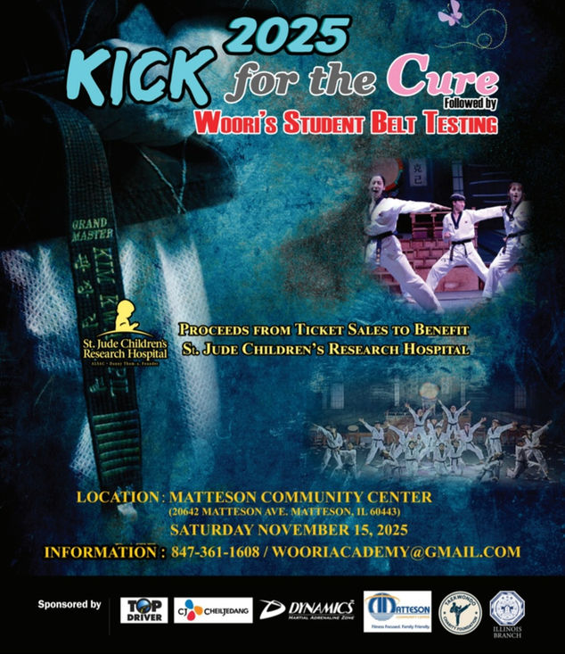 Kick for the Cure is a special annual fundraising event hosted by Woori Taekwondo & Hapkido Academy to support charitable causes through the Taekwondo Charity Foundation.